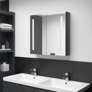 vidaXL Dulap de baie cu oglindă și LED, gri strălucitor, 60x11x80 cm