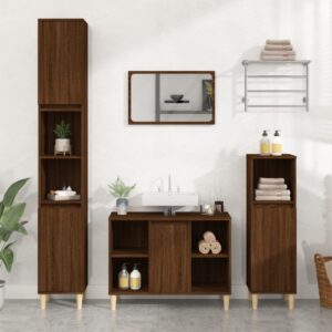vidaXL Dulap de baie, stejar maro, 30x30x130 cm, lemn prelucrat