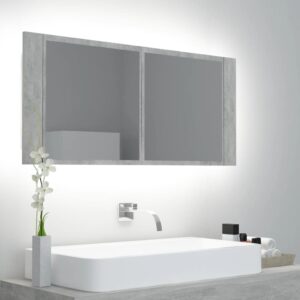 vidaXL Dulap de baie cu oglindă & LED, gri beton, 90x12x45 cm acril
