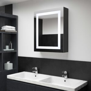vidaXL Dulap de baie cu oglindă și LED-uri, negru, 80x15x60 cm, MDF