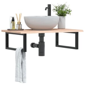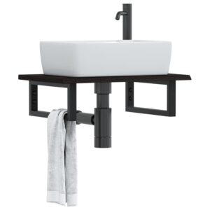 vidaXL Raft pentru lavoar montat pe perete, oțel și lemn masiv fag