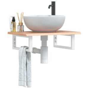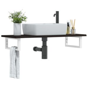 vidaXL Raft pentru lavoar montat pe perete, oțel și lemn masiv fag