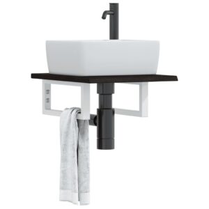 vidaXL Raft pentru lavoar montat pe perete, oțel și lemn masiv stejar