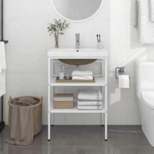 vidaXL Cadru lavoar baie cu chiuvetă încorporată, alb, fier