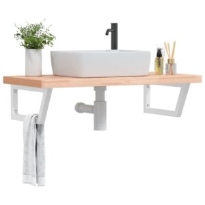 vidaXL Raft pentru lavoar montat pe perete, oțel și lemn masiv fag