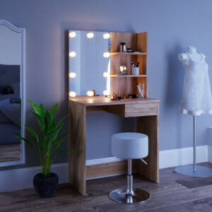 Masa de toaleta SONGMICS Masuta dressing cu taburet Songmics, MDF, 91x55x35 cm, natur/alb – SONGMICS, Maro