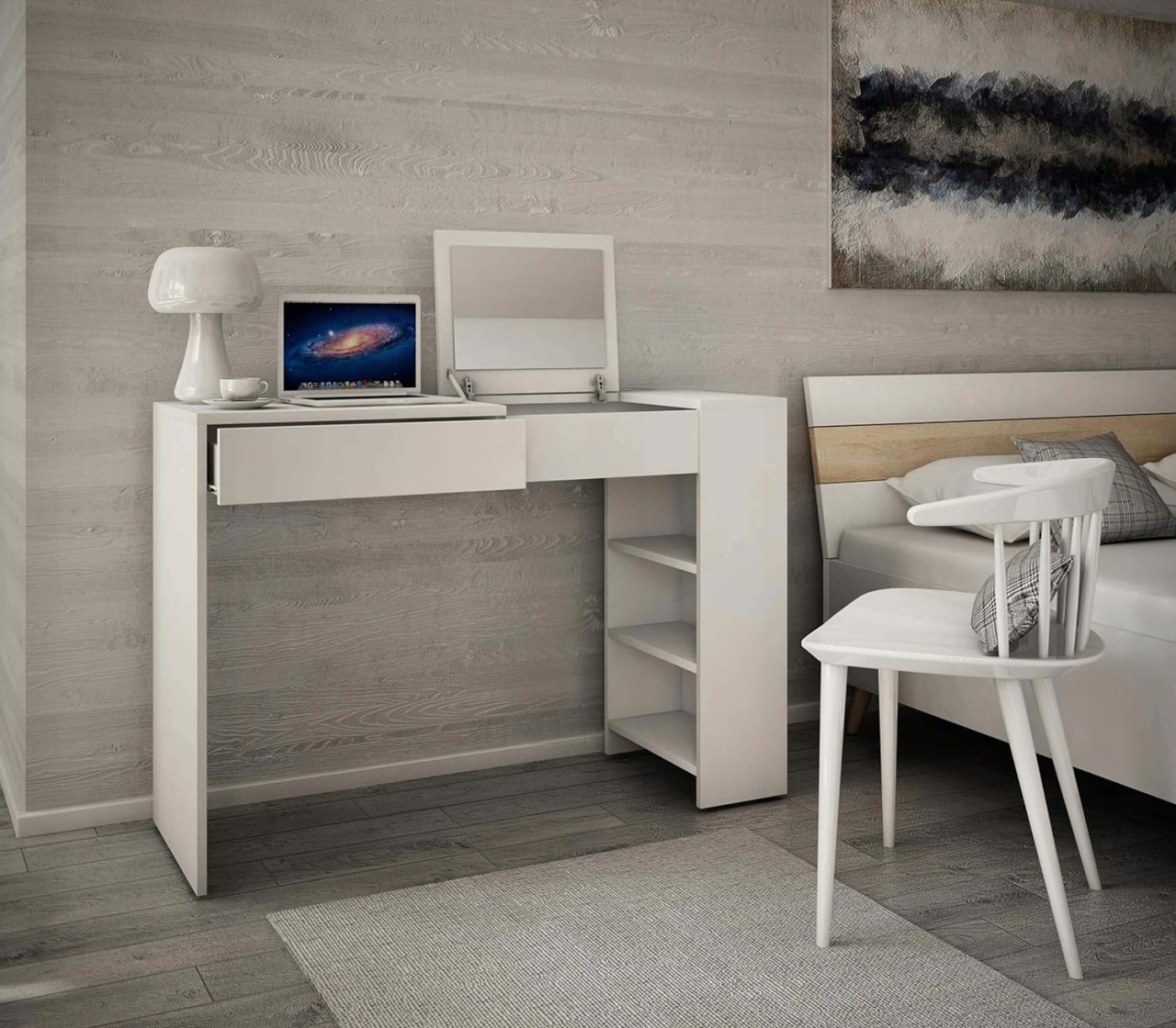 Set Masa Machiaj eMobili SEA510 – Set Masa alba toaleta cosmetica machiaj masuta vanity birou cu oglinda rabatabila