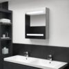 Introduceți un element cu un aspect plăcut în baia dvs. cu acest dulap cu oglindă de toaletă și LED! Dulapul de perete cu oglindă și LED adaugă o notă de stil contemporan și o lumină discretă, ambientală în orice cameră! Dulapul de perete este realizat din placă MDF de calitate cu finisaj melaminat, asigurând o utilizare pe termen lung. Având o bandă dublă cu lumini LED eficiente energetic, vă puteți oglindi în lumina ideală pentru aplicarea machiajului, pentru îngrijirea și hidratarea pielii. Banda cu LED vă poate ilumina camera, chipul și zâmbetul. Interiorul include 3 rafturi, care oferă spațiu de depozitare amplu pentru produse de îngrijire și cosmetice. Puteți aprinde/stinge lumina cu ușurință, cu ajutorul butonului din partea inferioară. Elegant și funcțional, acest dulap va adăuga un plus de originalitate designului camerei dvs.! Notă:Acest produs are un conector USB, dar sursa de alimentare certificată de 5 V nu este inclusă. Culoare: Gri beton Material: MDF cu finisaj melaminat, sticlă Dimensiuni: 50 x 14 x 60 cm (l x ad. x î) Lungime cablu: 1 m Cu 3 rafturi în interior pentru articole de toaletă și accesorii pentru machiaj Balama tampon pentru deschiderea și închiderea silențioasă a ușii Partea inferioară prevăzută cu întrerupător pornit/oprit Capacitate maximă de încărcare (totală): 10 kg Capacitate maximă de încărcare per raft: 5 kg Asamblare necesară: Da