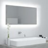 vidaXL Oglindă de baie cu LED, gri beton, 90×8,5×37 cm, acril