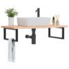 vidaXL Raft pentru lavoar montat pe perete, oțel și lemn masiv fag