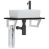 Raftul pentru chiuvetă montat pe perete se fixează în siguranță pe perete, oferind o soluție elegantă și care economisește spațiu, pentru baia dvs. Robust și de lungă durată: Acest raft de lavoar este combinat cu o structură din oțel și un blat din lemn masiv de stejar, făcându-l robust, stabil și de lungă durată.Economisește spațiu: Raftul plutitor dispune de spațiu amplu pentru a depozita creme și articole mici. Datorită formei trapez, puteți agăța prosoape sau alte lucruri pe suport, pentru a economisi spațiu.Ușor de utilizat: Blatul nu are orificii găurite pentru a permite montarea chiuvetei în stânga, dreapta sau în centru, în funcție de cerințele camerei dumneavoastră. Datorită orificiilor pre-găurite în suport, acesta poate fi ușor asamblat cu blatul mesei și montat pe perete.Aplicații largi: Datorită designului său modern, oferă spațiu suplimentar pentru diferite tipuri de băi. Bine de știut:Șuruburile nu sunt incluse, puteți achiziționa șuruburile separat, pe baza informațiilor furnizate mai jos.Atașare pe perete: 2 buc. șuruburi cu expansiune M8 per suportBlat din lemn: 2 buc. șuruburi M5x18 (T=2) sau 2 buc. șuruburi M5x20 (T=2,5/4cm) per suportCa produs natural, lemnul poate prezenta noduri și imperfecțiuni pe care le umplem cu umpluturi negre, pentru a asigura un aspect neted. Blat: Culoare: Maro închis Material: Lemn masiv de stejar cu finisaj închis la culoare Dimensiuni: 60 x 40 x 2 cm (L x l x gros.) Suport de raft: Culoare: Alb Material: Oțel Dimensiune suport raft: 15 x 35 cm (l x L) Dimensiuni tub: 3 x 3 cm (l x L) Forma: Trapez Greutate susținută: 100 kg Distanța între orificiile de montare pe perete: 60 mm Distanța orificiilor de pe blat până la margine este de 100 mm pe fiecare parte Cu 2 orificii pentru montare pe perete și 2 orificii pentru montare pe blat Șuruburile nu sunt incluse Asamblare necesară: Da Pachetul de livrare conține: 1 x blat 2 x Suport pentru raft