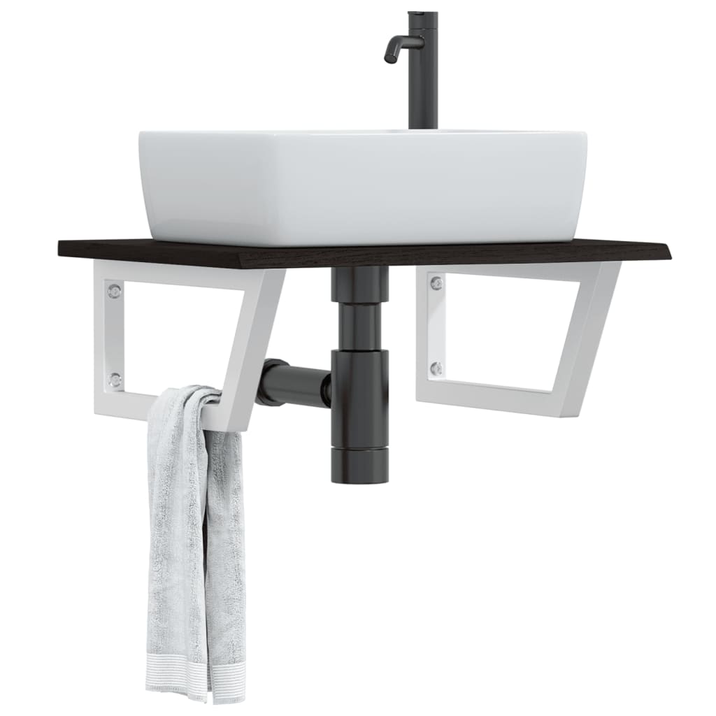 vidaXL Raft pentru lavoar montat pe perete, oțel și lemn masiv stejar