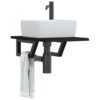 Raftul pentru chiuvetă montat pe perete se fixează în siguranță pe perete, oferind o soluție elegantă și care economisește spațiu, pentru baia dvs. Robust și de lungă durată: Acest raft de lavoar este combinat cu o structură din oțel și un blat din lemn masiv de stejar, făcându-l robust, stabil și de lungă durată.Economisește spațiu: Raftul plutitor dispune de spațiu amplu pentru a depozita creme și articole mici. Datorită formei trapez, puteți agăța prosoape sau alte lucruri pe suport, pentru a economisi spațiu.Ușor de utilizat: Blatul nu are orificii găurite pentru a permite montarea chiuvetei în stânga, dreapta sau în centru, în funcție de cerințele camerei dumneavoastră. Datorită orificiilor pre-găurite în suport, acesta poate fi ușor asamblat cu blatul mesei și montat pe perete.Aplicații largi: Datorită designului său modern, oferă spațiu suplimentar pentru diferite tipuri de băi. Bine de știut:Șuruburile nu sunt incluse, puteți achiziționa șuruburile separat, pe baza informațiilor furnizate mai jos.Atașare pe perete: 2 buc. șuruburi cu expansiune M8 per suportBlat din lemn: 2 buc. șuruburi M5x18 (T=2) sau 2 buc. șuruburi M5x20 (T=2,5/4cm) per suportCa produs natural, lemnul poate prezenta noduri și imperfecțiuni pe care le umplem cu umpluturi negre, pentru a asigura un aspect neted. Blat: Culoare: Maro închis Material: Lemn masiv de stejar cu finisaj închis la culoare Dimensiuni: 40 x 60 x 2 cm (L x l x gros.) Suport de raft: Culoare: Negru Material: Oțel Dimensiune suport raft: 15 x 35 cm (l x L) Dimensiuni tub: 3 x 3 cm (l x L) Forma: Trapez Greutate susținută: 100 kg Distanța între orificiile de montare pe perete: 60 mm Distanța orificiilor de pe blat până la margine este de 100 mm pe fiecare parte Cu 2 orificii pentru montare pe perete și 2 orificii pentru montare pe blat Șuruburile nu sunt incluse Asamblare necesară: Da Pachetul de livrare conține: 1 x blat 2 x Suport pentru raft