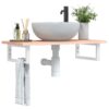 Raftul pentru chiuvetă montat pe perete se fixează în siguranță pe perete, oferind o soluție elegantă și care economisește spațiu, pentru baia dvs. Robust și de lungă durată: Acest raft de lavoar este combinat cu o structură din oțel și un blat din lemn masiv de stejar, făcându-l robust, stabil și de lungă durată.Economisește spațiu: Raftul plutitor dispune de spațiu amplu pentru a depozita creme și articole mici. Datorită formei dreptunghiulare, puteți agăța prosoape sau alte lucruri pe suport, pentru a economisi spațiu.Ușor de utilizat: Blatul nu are orificii găurite pentru a permite montarea chiuvetei în stânga, dreapta sau în centru, în funcție de cerințele camerei dumneavoastră. Datorită orificiilor pre-găurite în suport, acesta poate fi ușor asamblat cu blatul mesei și montat pe perete.Aplicații largi: Datorită designului său modern, oferă spațiu suplimentar pentru diferite tipuri de băi. Bine de știut:Șuruburile nu sunt incluse, puteți achiziționa șuruburile separat, pe baza informațiilor furnizate mai jos.Atașare pe perete: 2 buc. șuruburi cu expansiune M8 per suportBlat din lemn: 2 buc. șuruburi M5x18 (T=2) sau 2 buc. șuruburi M5x20 (T=2,5/4cm) per suportCa produs natural, lemnul poate prezenta noduri și imperfecțiuni pe care le umplem cu umpluturi negre, pentru a asigura un aspect neted. Blat: Material: Lemn masiv de stejar (netratat) Dimensiuni: 80 x 40 x 2 cm (L x l x gros.) Suport de raft: Culoare: Alb Material: Oțel Dimensiune suport raft: 15 x 35 cm (l x L) Dimensiuni tub: 3 x 3 cm (l x L) Formă: Dreptunghiular Greutate susținută: 100 kg Distanța între orificiile de montare pe perete: 60 mm Distanța orificiilor de pe blat până la margine este de 60 mm pe fiecare parte Cu 2 orificii pentru montare pe perete și 2 orificii pentru montare pe blat Șuruburile nu sunt incluse Asamblare necesară: Da Pachetul de livrare conține: 1 x blat 2 x Suport pentru raft