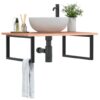 vidaXL Raft pentru lavoar montat pe perete, oțel și lemn masiv stejar