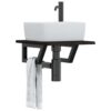 Raftul pentru chiuvetă montat pe perete se fixează în siguranță pe perete, oferind o soluție elegantă și care economisește spațiu, pentru baia dvs. Robust și de lungă durată: Acest raft de lavoar este combinat cu o structură din oțel și un blat din lemn masiv de stejar, făcându-l robust, stabil și de lungă durată.Economisește spațiu: Raftul plutitor dispune de spațiu amplu pentru a depozita creme și articole mici. Datorită formei trapez, puteți agăța prosoape sau alte lucruri pe suport, pentru a economisi spațiu.Ușor de utilizat: Blatul nu are orificii găurite pentru a permite montarea chiuvetei în stânga, dreapta sau în centru, în funcție de cerințele camerei dumneavoastră. Datorită orificiilor pre-găurite în suport, acesta poate fi ușor asamblat cu blatul mesei și montat pe perete.Aplicații largi: Datorită designului său modern, oferă spațiu suplimentar pentru diferite tipuri de băi. Bine de știut:Șuruburile nu sunt incluse, puteți achiziționa șuruburile separat, pe baza informațiilor furnizate mai jos.Atașare pe perete: 2 buc. șuruburi cu expansiune M8 per suportBlat din lemn: 2 buc. șuruburi M5x18 (T=2) sau 2 buc. șuruburi M5x20 (T=2,5/4cm) per suportCa produs natural, lemnul poate prezenta noduri și imperfecțiuni pe care le umplem cu umpluturi negre, pentru a asigura un aspect neted. Blat: Culoare: Maro închis Material: Lemn masiv de stejar cu finisaj închis la culoare Dimensiuni: 40 x 50 x 2 cm (L x l x gros.) Suport de raft: Culoare: Negru Material: Oțel Dimensiune suport raft: 15 x 35 cm (l x L) Dimensiuni tub: 3 x 3 cm (l x L) Forma: Trapez Greutate susținută: 100 kg Distanța între orificiile de montare pe perete: 60 mm Distanța orificiilor de pe blat până la margine este de 100 mm pe fiecare parte Cu 2 orificii pentru montare pe perete și 2 orificii pentru montare pe blat Șuruburile nu sunt incluse Asamblare necesară: Da Pachetul de livrare conține: 1 x blat 2 x Suport pentru raft