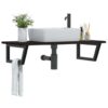 Raftul pentru chiuvetă montat pe perete se fixează în siguranță pe perete, oferind o soluție elegantă și care economisește spațiu, pentru baia dvs. Robust și de lungă durată: Acest raft de lavoar este combinat cu o structură din oțel și un blat din lemn masiv de stejar, făcându-l robust, stabil și de lungă durată.Economisește spațiu: Raftul plutitor dispune de spațiu amplu pentru a depozita creme și articole mici. Datorită formei trapez, puteți agăța prosoape sau alte lucruri pe suport, pentru a economisi spațiu.Ușor de utilizat: Blatul nu are orificii găurite pentru a permite montarea chiuvetei în stânga, dreapta sau în centru, în funcție de cerințele camerei dumneavoastră. Datorită orificiilor pre-găurite în suport, acesta poate fi ușor asamblat cu blatul mesei și montat pe perete.Aplicații largi: Datorită designului său modern, oferă spațiu suplimentar pentru diferite tipuri de băi. Bine de știut:Șuruburile nu sunt incluse, puteți achiziționa șuruburile separat, pe baza informațiilor furnizate mai jos.Atașare pe perete: 2 buc. șuruburi cu expansiune M8 per suportBlat din lemn: 2 buc. șuruburi M5x18 (T=2) sau 2 buc. șuruburi M5x20 (T=2,5/4cm) per suportCa produs natural, lemnul poate prezenta noduri și imperfecțiuni pe care le umplem cu umpluturi negre, pentru a asigura un aspect neted. Blat: Culoare: Maro închis Material: Lemn masiv de stejar cu finisaj închis la culoare Dimensiuni: 100 x 50 x 2 cm (L x l x gros.) Suport de raft: Culoare: Negru Material: Oțel Dimensiune suport raft: 20 x 45 cm (l x L) Dimensiuni tub: 3 x 3 cm (l x L) Forma: Trapez Greutate susținută: 100 kg Distanța între orificiile de montare pe perete: 60 mm Distanța orificiilor de pe blat până la margine este de 100 mm pe fiecare parte Cu 2 orificii pentru montare pe perete și 2 orificii pentru montare pe blat Șuruburile nu sunt incluse Asamblare necesară: Da Pachetul de livrare conține: 1 x blat 2 x Suport pentru raft