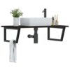 Raftul pentru chiuvetă montat pe perete se fixează în siguranță pe perete, oferind o soluție elegantă și care economisește spațiu, pentru baia dvs. Robust și de lungă durată: Acest raft de lavoar este combinat cu o structură din oțel și un blat din lemn masiv de stejar, făcându-l robust, stabil și de lungă durată.Economisește spațiu: Raftul plutitor dispune de spațiu amplu pentru a depozita creme și articole mici. Datorită formei trapez, puteți agăța prosoape sau alte lucruri pe suport, pentru a economisi spațiu.Ușor de utilizat: Blatul nu are orificii găurite pentru a permite montarea chiuvetei în stânga, dreapta sau în centru, în funcție de cerințele camerei dumneavoastră. Datorită orificiilor pre-găurite în suport, acesta poate fi ușor asamblat cu blatul mesei și montat pe perete.Aplicații largi: Datorită designului său modern, oferă spațiu suplimentar pentru diferite tipuri de băi. Bine de știut:Șuruburile nu sunt incluse, puteți achiziționa șuruburile separat, pe baza informațiilor furnizate mai jos.Atașare pe perete: 2 buc. șuruburi cu expansiune M8 per suportBlat din lemn: 2 buc. șuruburi M5x18 (T=2) sau 2 buc. șuruburi M5x20 (T=2,5/4cm) per suportCa produs natural, lemnul poate prezenta noduri și imperfecțiuni pe care le umplem cu umpluturi negre, pentru a asigura un aspect neted. Blat: Culoare: Maro închis Material: Lemn masiv de stejar cu finisaj închis la culoare Dimensiuni: 100 x 60 x 2 cm (L x l x gros.) Suport de raft: Culoare: Negru Material: Oțel Dimensiune suport raft: 25 x 55 cm (l x L) Dimensiuni tub: 3 x 3 cm (l x L) Forma: Trapez Greutate susținută: 100 kg Distanța între orificiile de montare pe perete: 60 mm Distanța orificiilor de pe blat până la margine este de 100 mm pe fiecare parte Cu 2 orificii pentru montare pe perete și 2 orificii pentru montare pe blat Șuruburile nu sunt incluse Asamblare necesară: Da Pachetul de livrare conține: 1 x blat 2 x Suport pentru raft